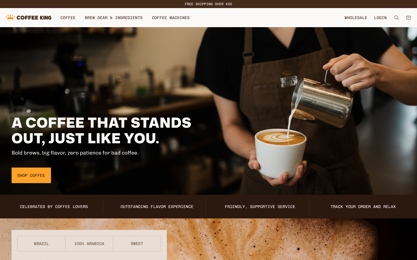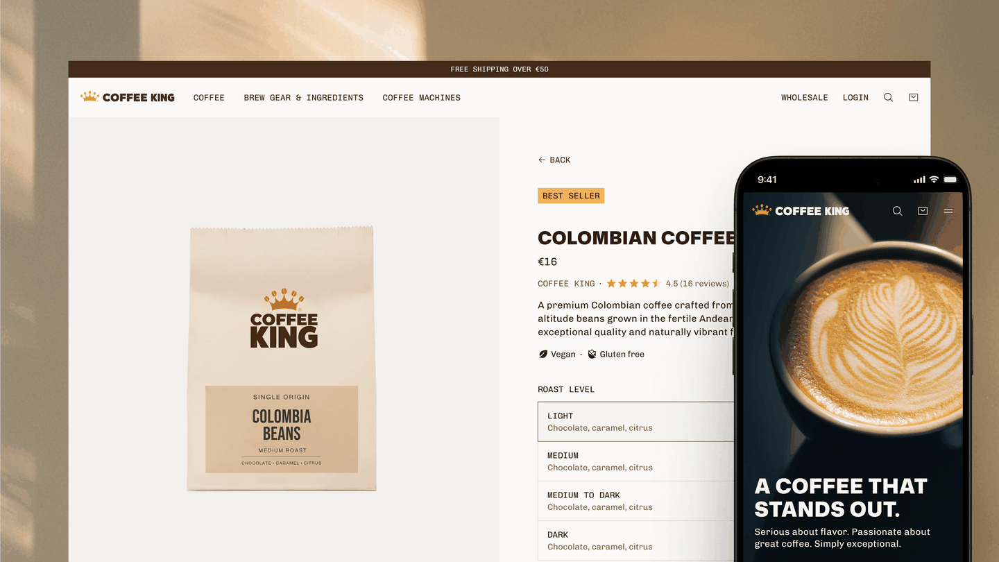 Coffee King is a coffee retailer with a growing product range and ambitions to match. They came to us with a fragmented Shopify setup and no clear separation between their consumer and wholesale audiences. We built them a single, cohesive platform that serves both and scales across the UK and Europe.